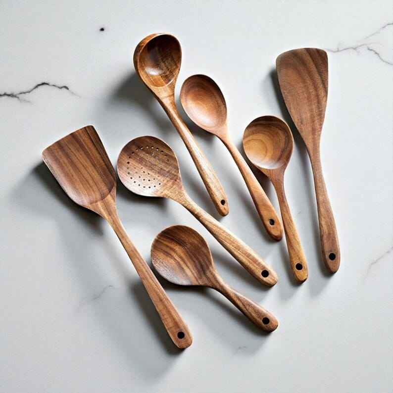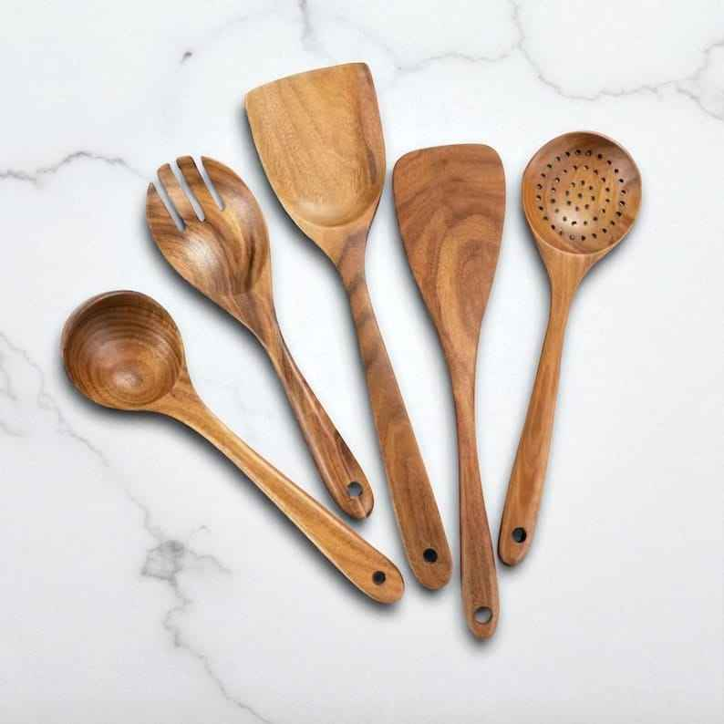 Classic Wooden Spoons Cooking Set Party Dinner Tableware Cutlery Flatware Spoon Chopsticks Eco-Friendly Customized SANIYA