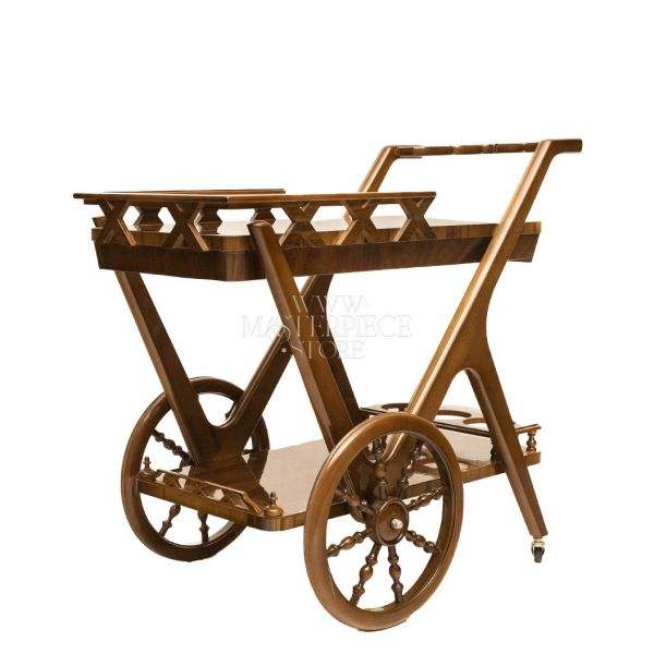 Classic Wooden Tea Trolley With Geometric Design And Elegant Wheels Serving Cart