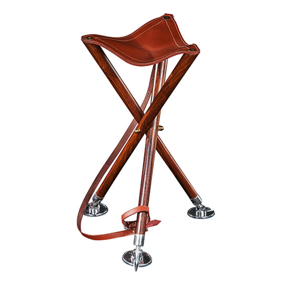 Classic Wooden Tripod Stool Hunting Shooting Fishing Tripod Stool Leather Seat Camping Outdoor Indoor Chair