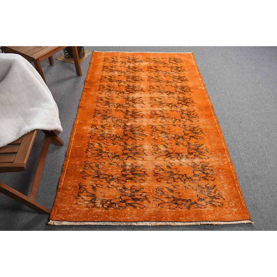 Classic Wool Patchwork Rug Orange Brown Handmade Rectangle Hallway Design Latex for Living Viscose 36x61 ft Size Bedside Rug