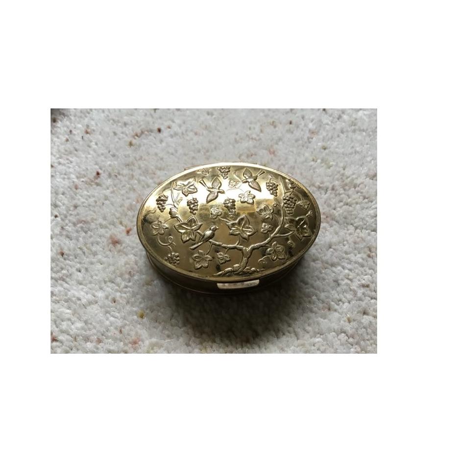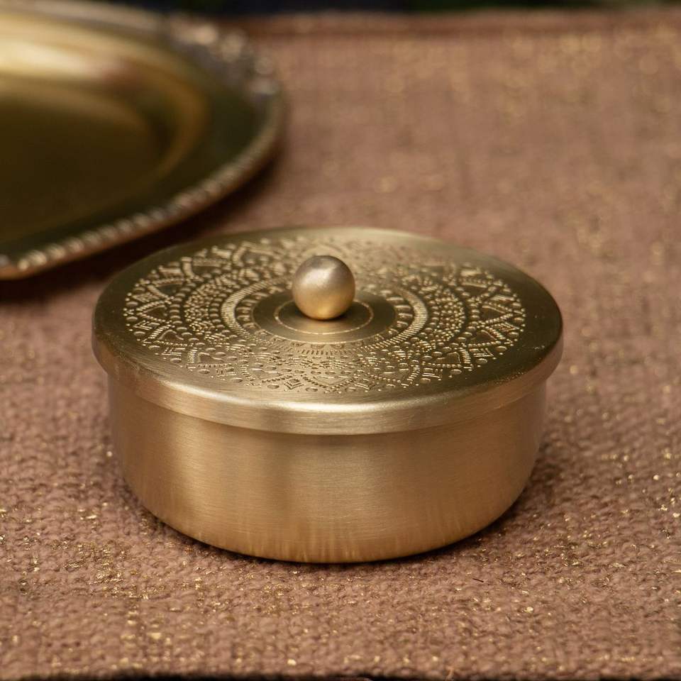 Classic brass pill box with timeless motifs handcrafted for spiritual seekers storing herbs pills or protective charms