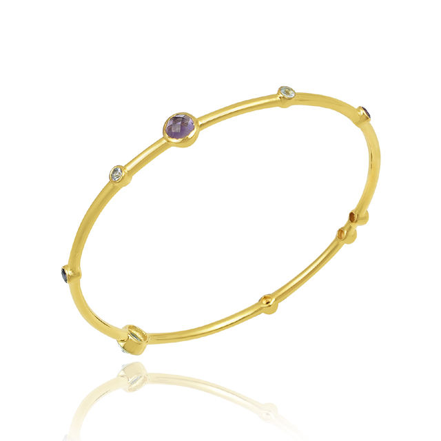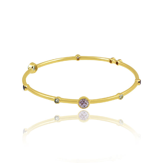 Classic gold plated 925 sterling silver multi stone bangle for women and girl wedding gift jewelry