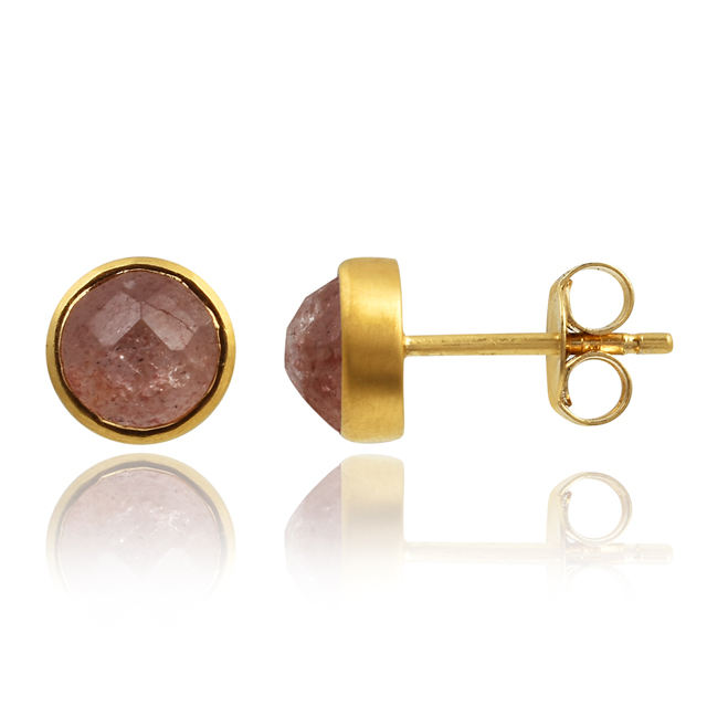 Classic gold plated matte finish 925 sterling silver denim blue opal gemstone stud earring