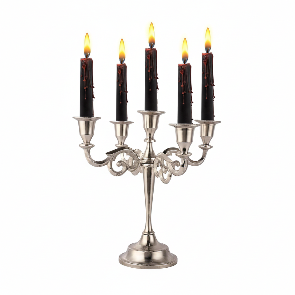 Classic gold tone metal candelabra with candle cups for luxury event decoration and festive dining table style