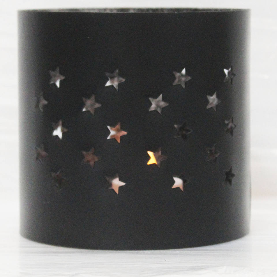 Classical Designer Cutout Votive Tea Light Candle Holders 5X5X5 Inch Silver and Black Metal for Home Decoration