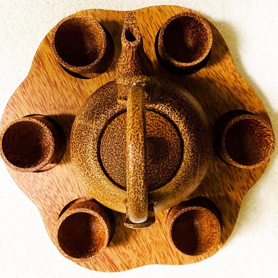 Classical Coconut Wooden Teapot Set Handcrafted Natural Tea Set Made From Coco Wood Teacup Pot Sets for Tea-drinking Serving