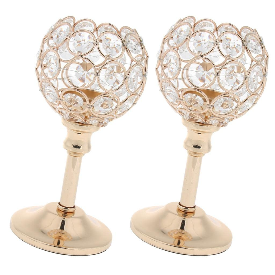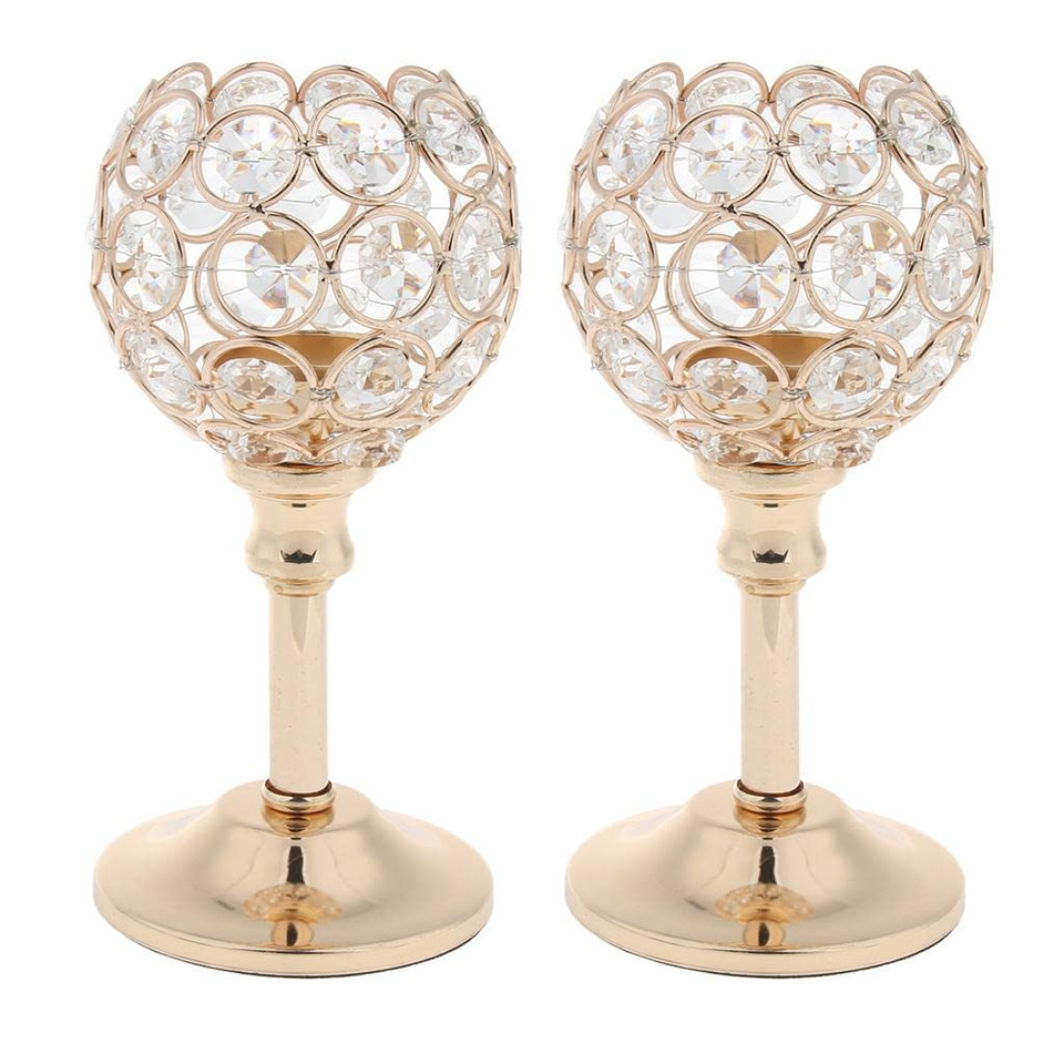 Classical Crystal Gold & Silver Pillar Tealight Candle Holder for Christmas & Wedding Table Centerpiece & Home Decoration