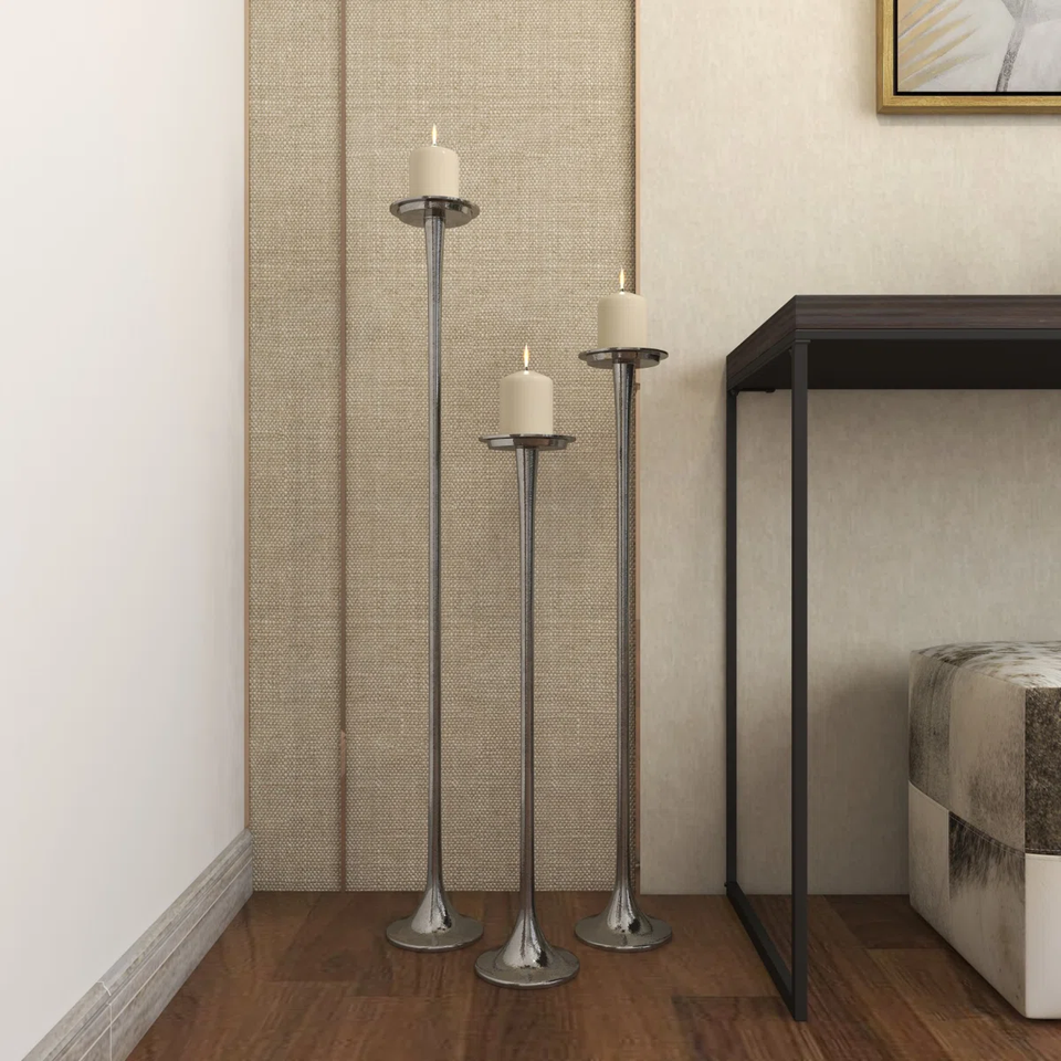 Classical Design Silver Luxury Aluminum Candlestick Holder Eco-Friendly Heat Resistant Handmade for Home Wedding Christmas