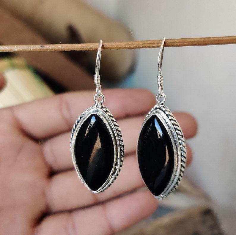 Classical Earrings Jewelry For Women Silver Boho Style Jewelry 925 Sterling Silver Black Onyx Gemstone Handmade Earrings Gift