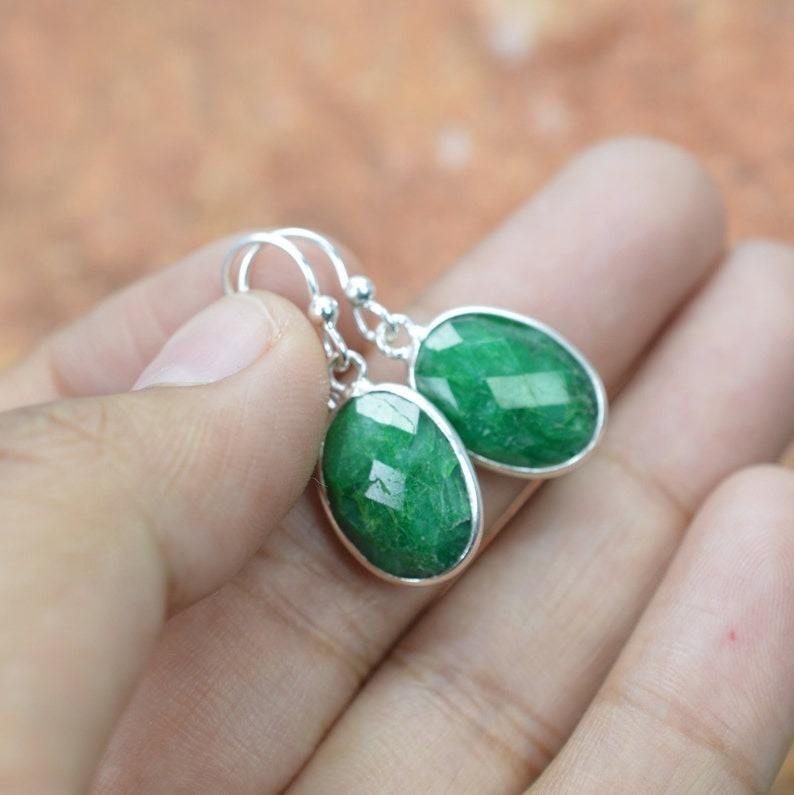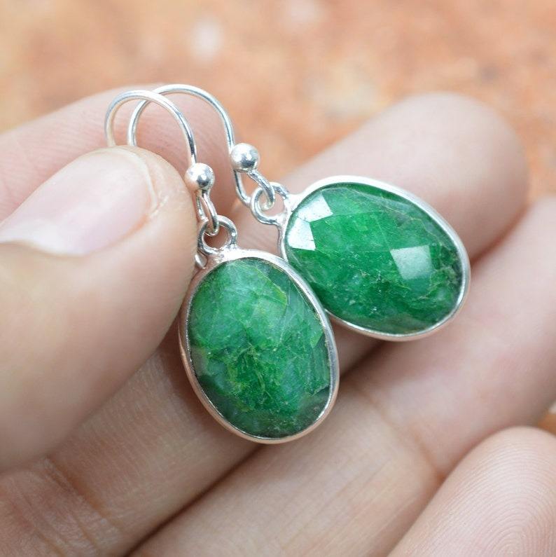 Classical Earrings Jewelry For Women Silver Boho Style Jewelry 925 Sterling Silver Emerald Gemstone Handmade Earrings Gift Wife