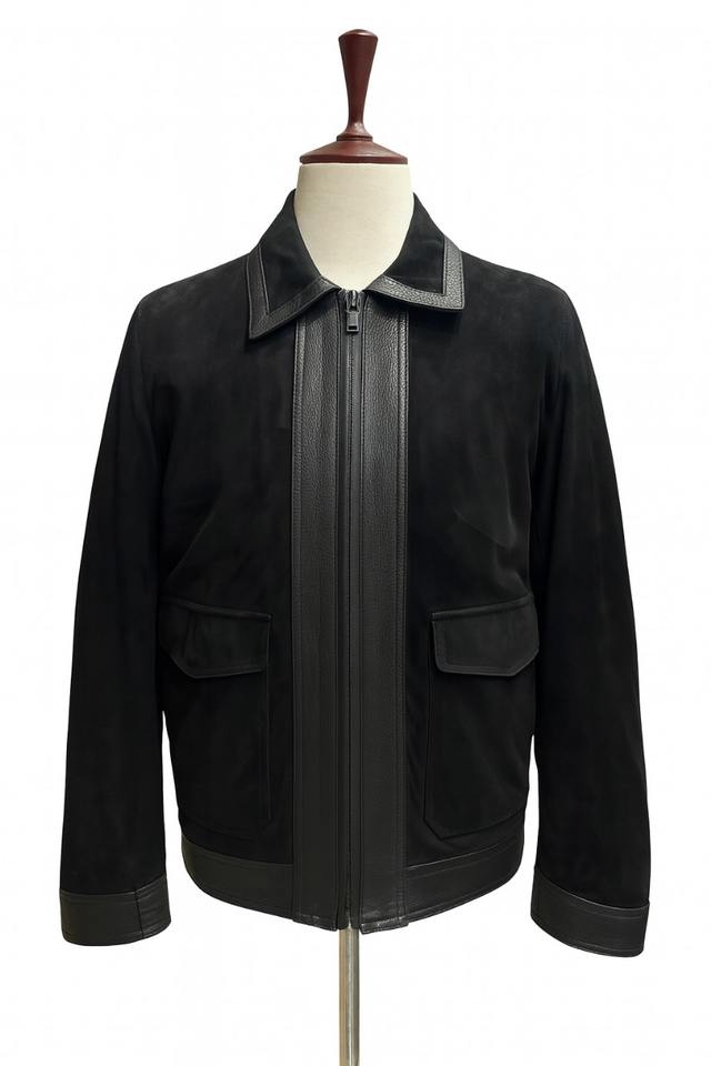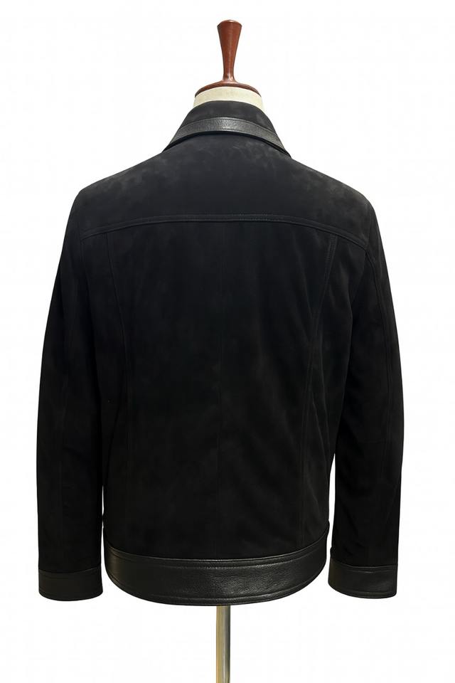 Classical Gents Goat Suede Leather Jacket Stand Front Celebrity Inspired Casual Outerwear for Classic Look Moto Biker Style