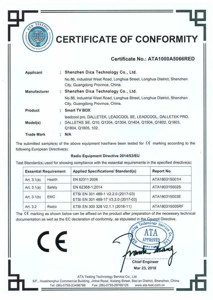 Certification:CE