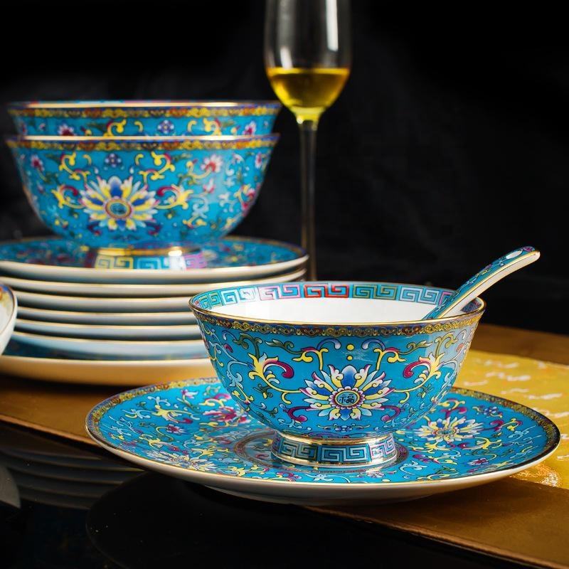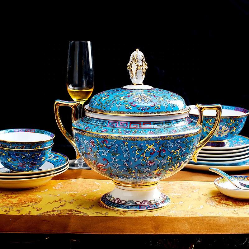 Classical Luxury Cloisonne Living Room Home Decors Porcelain Dinnerware Sets Party Ceramic Cup Kit Chinese Best Selling 86 Pcs