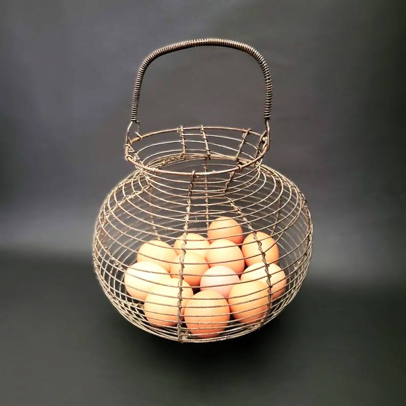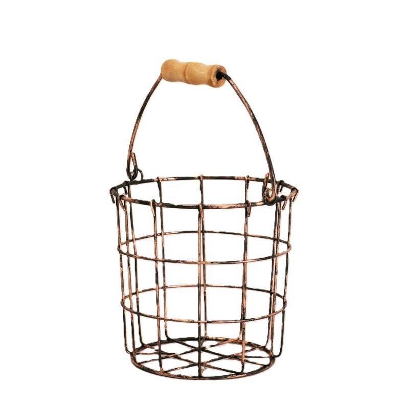 Classical Metal Mesh Basket Storage And Circle Design Fruit Gardening Harvest Basket Kitchen Organizer Wooden Handle