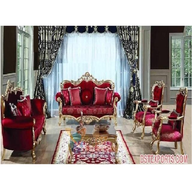 Classical Turkish Red Gold Finish Sofa Set Victorian Red Carved Hand Carved Sofa Set Red Gold Sofa Set for Living Room