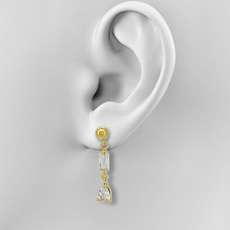 14k solid gold Women's Classically Elegant Drop Earrings with Baguette Pear Cut Cubic Zirconia Geometric Shape