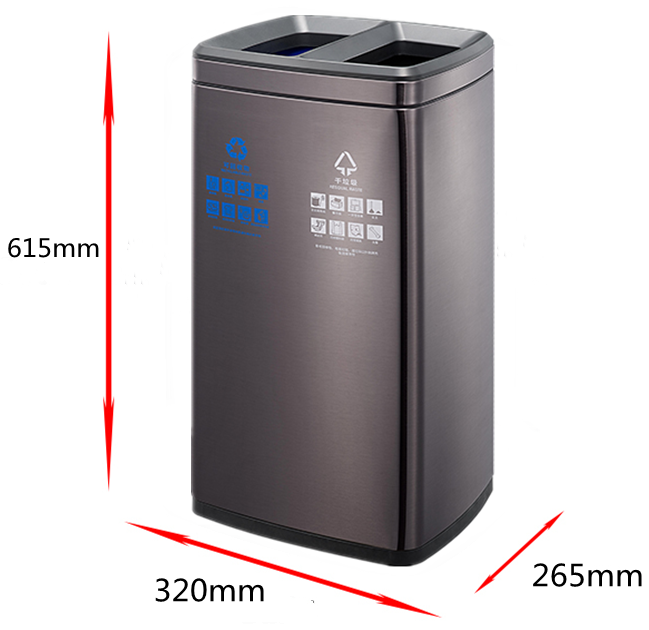 Classified Double Sort Recycle Trash Can Without Lid Standing Indoor Use 2 Compartments Stainless Steel Garbage Bin