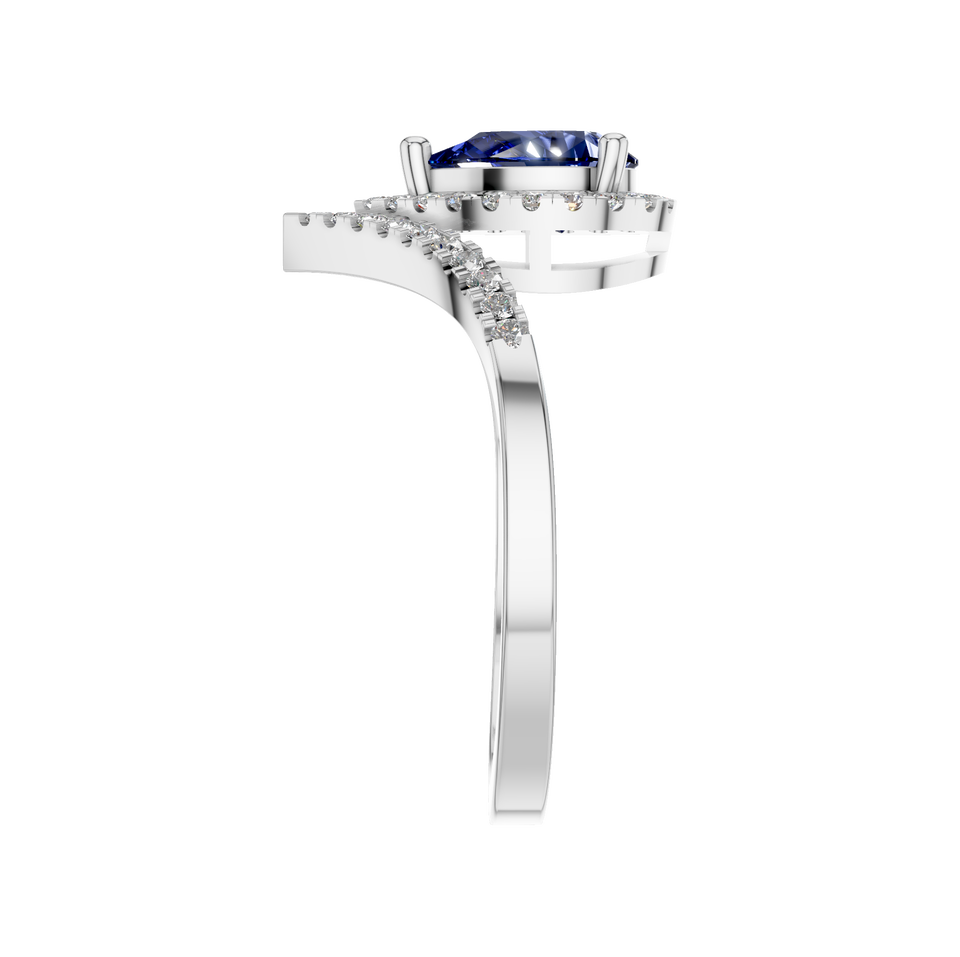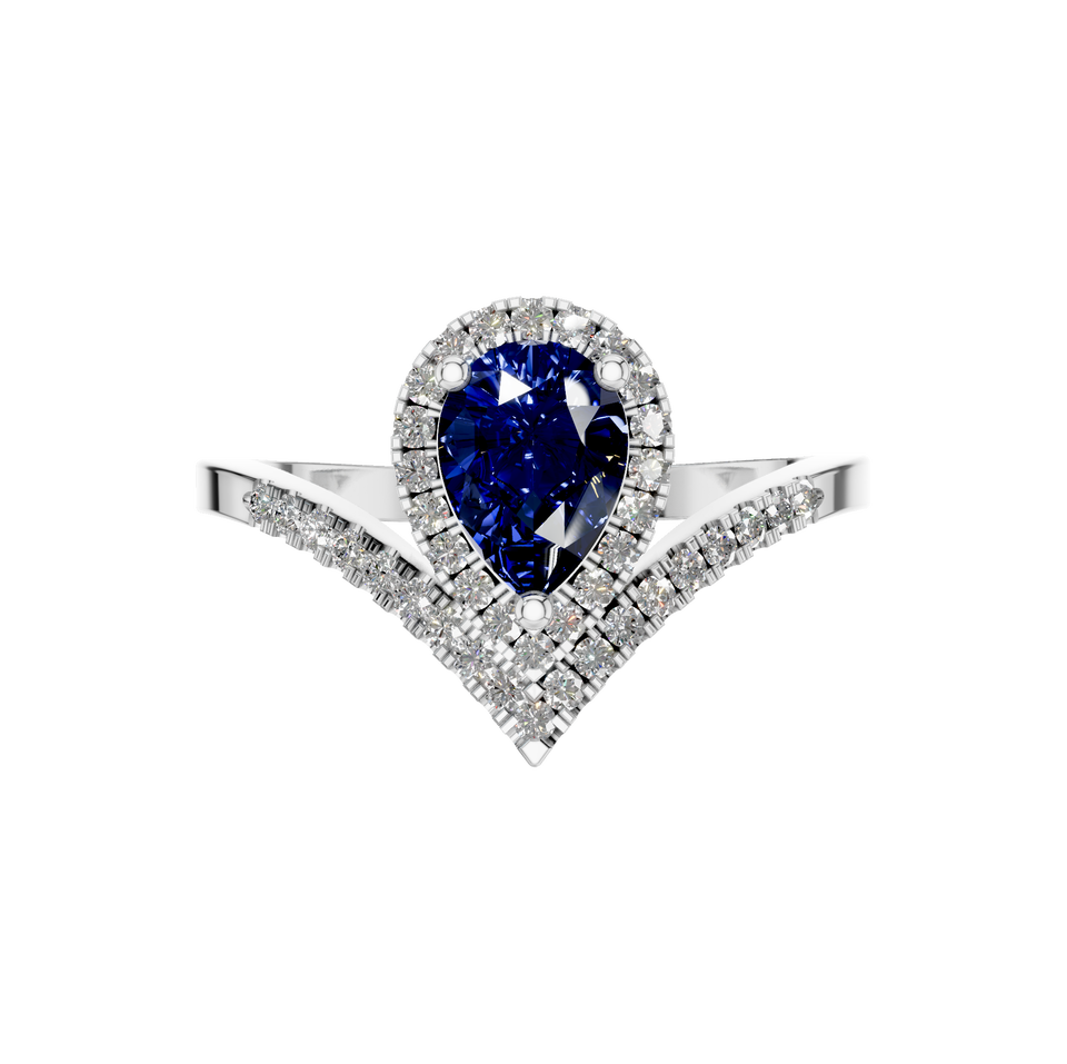 Style:Unique Teardrop Natural Blue Sapphire Gemstone and Diamond Ring
