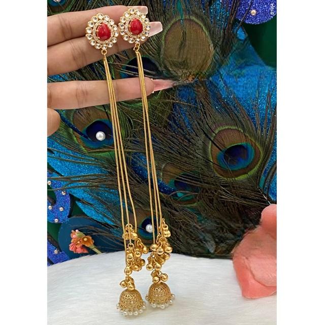 Classy Best Quality Traditional Wear Gold Plated Long Earrings for Party Wedding And Function Wear Collection For Women Girls