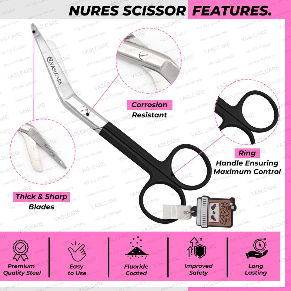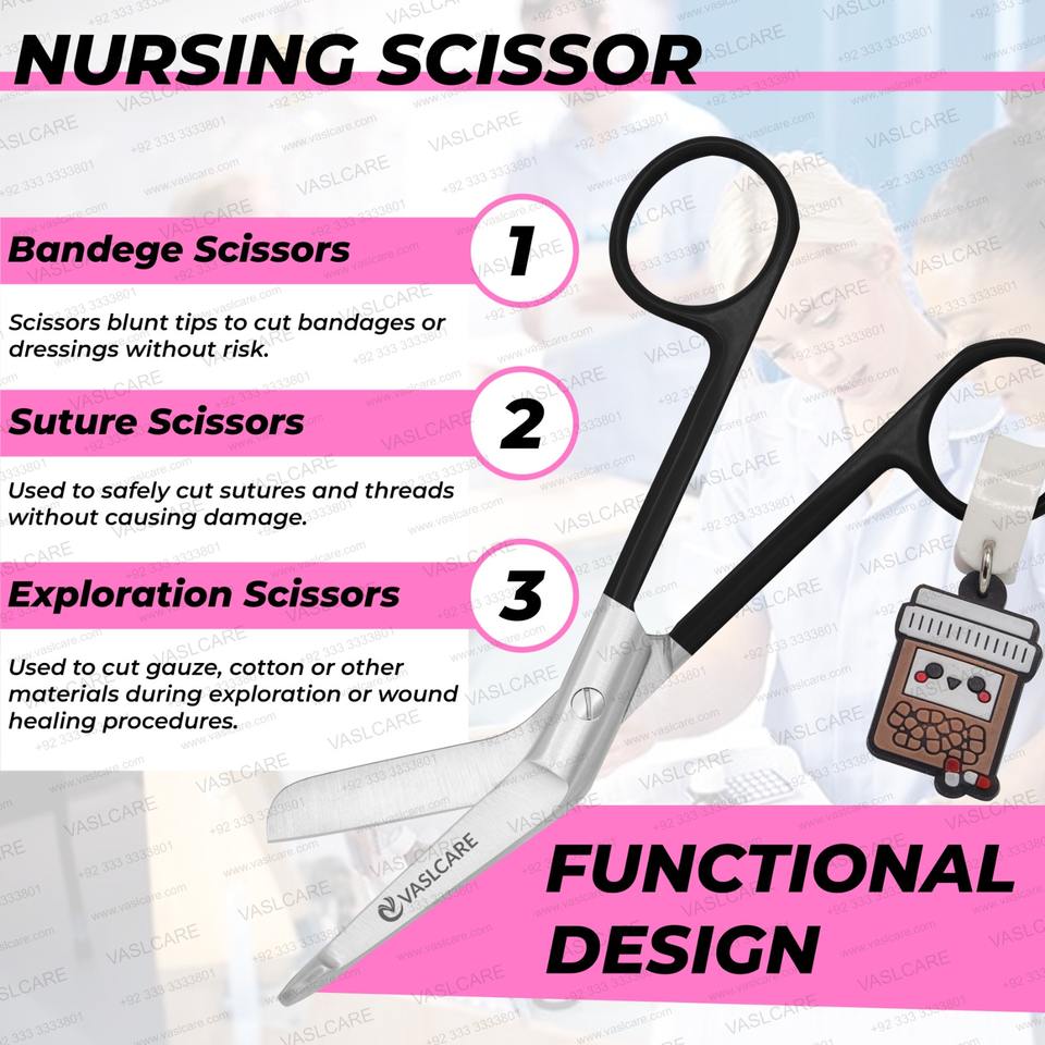 Specification:Blunt tips, Angled blades, Stainless steel, Ring color handles, Sharp Cutting Edge Blades