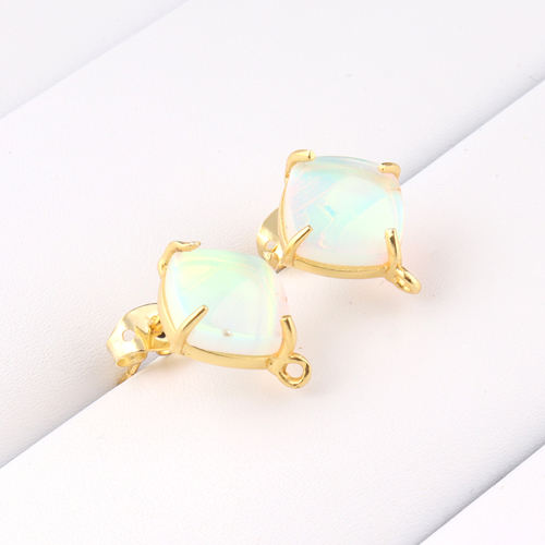 Classy Fashion Jewelry Cushion Shape Ethiopian Opal Minimalist Stud Earrings Gold Plated Prong Setting Push Back Stud Earrings