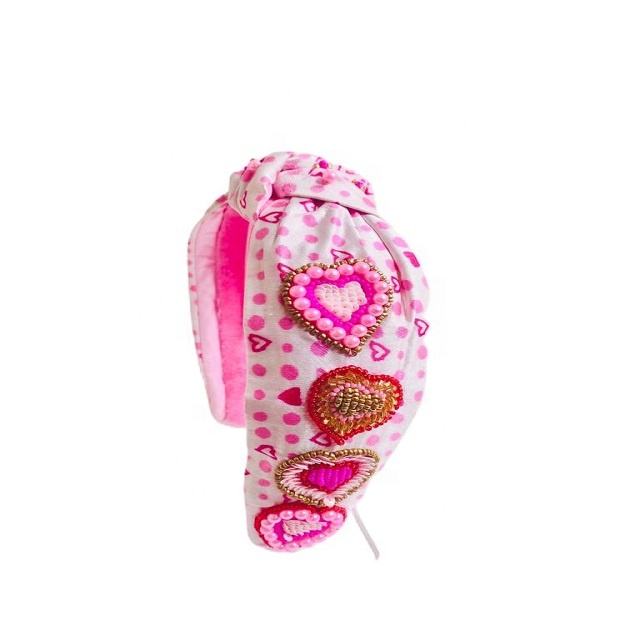 Classy Heart-Shaped Indian Hand Embellished Headband Women's Hair Accessory for Valentine's Day
