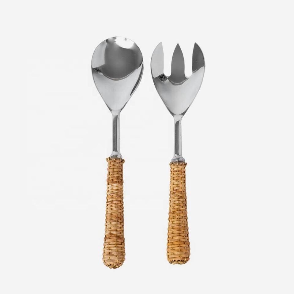 Classy Look Cane Weaving Design Cutlery Set Round Handmade Handle Flatware Set Stainless Steel Western Style Cutlery Set