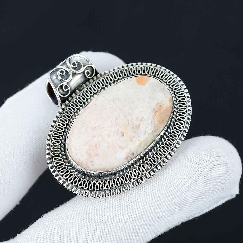 Classy Orange Scolecite Antique 925 Sterling Silver Pendant Genuine Gemstone Vintage Wonderful Jewelry For Gift Handmade Pendant