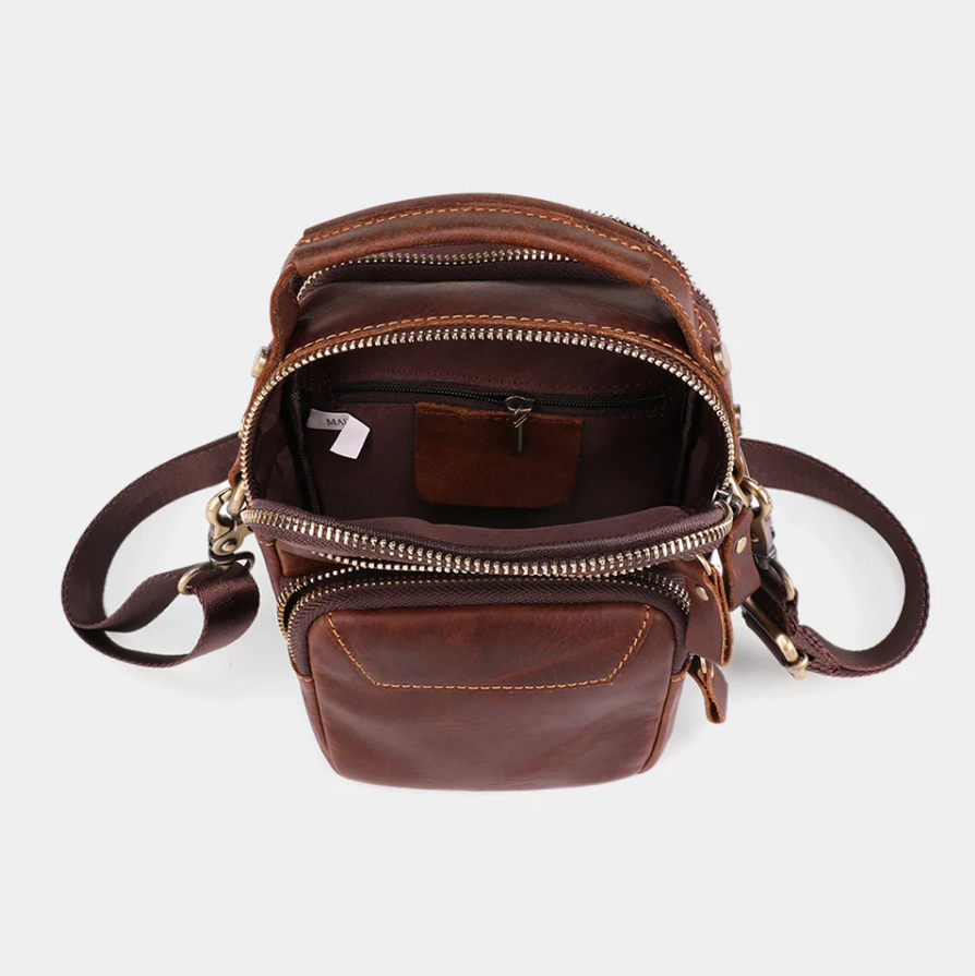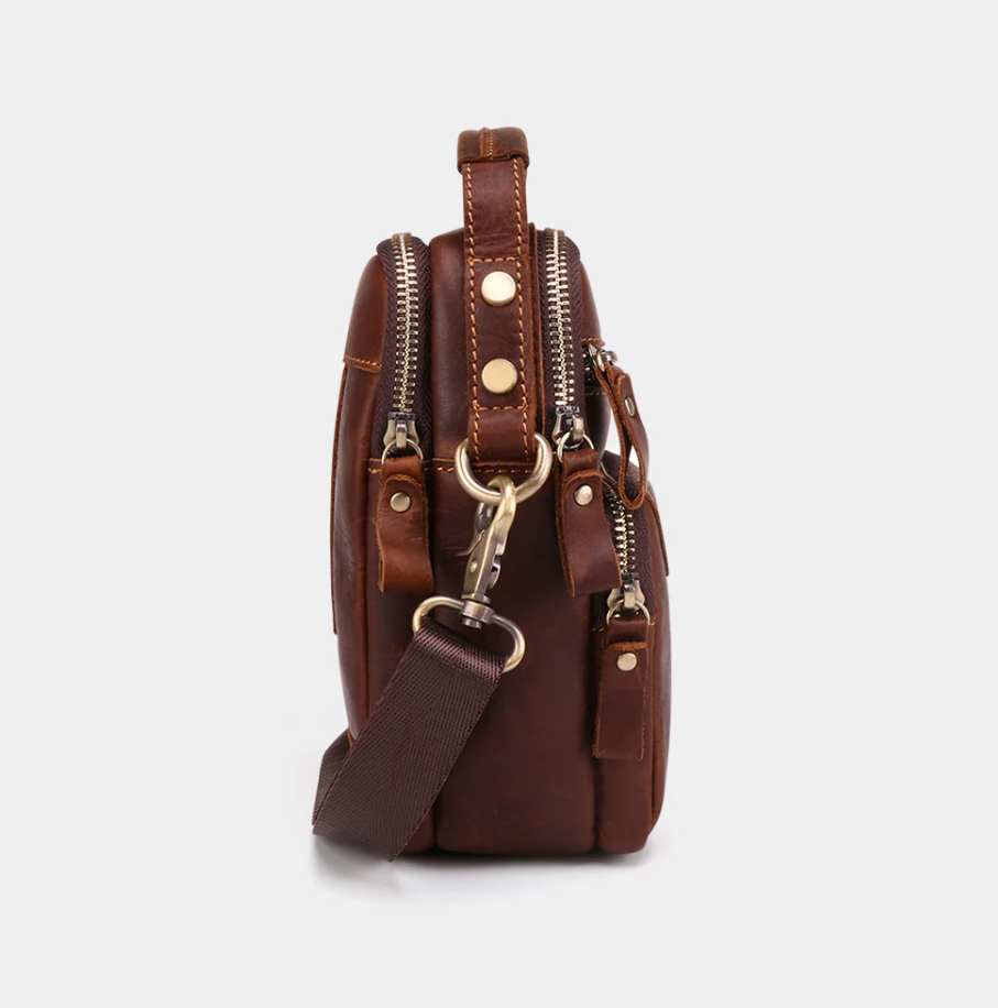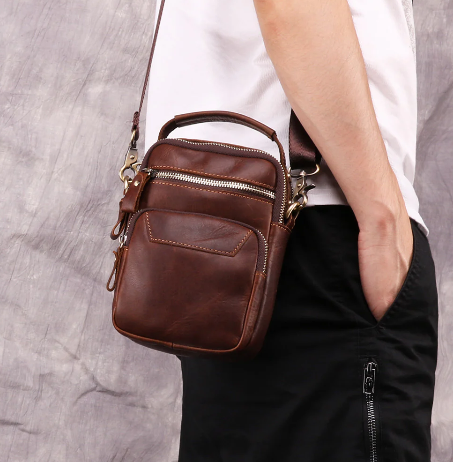 Classy dark Brown Tan Genuine Buffalo Leather Bohemian Style T-Bar Sling Shoulder Bag Messenger Satchel Crossbody