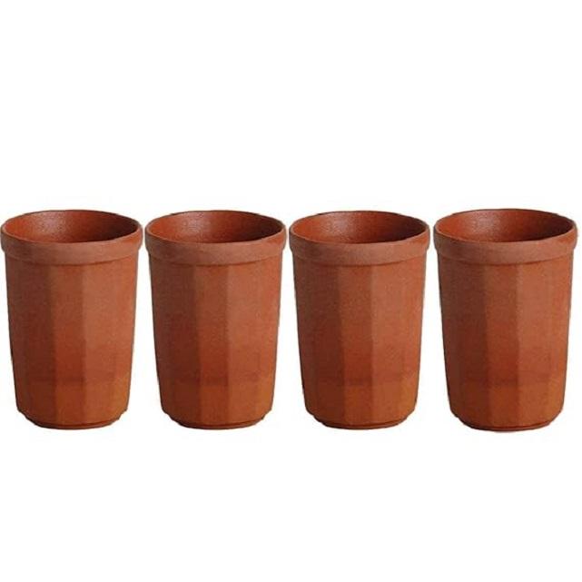 Set of 4 Eco-Friendly Clay Mitti Design Drinking Water Glass Tumbler Brown Water Glasses