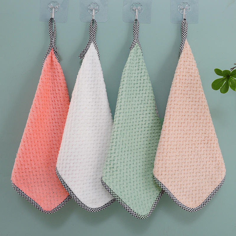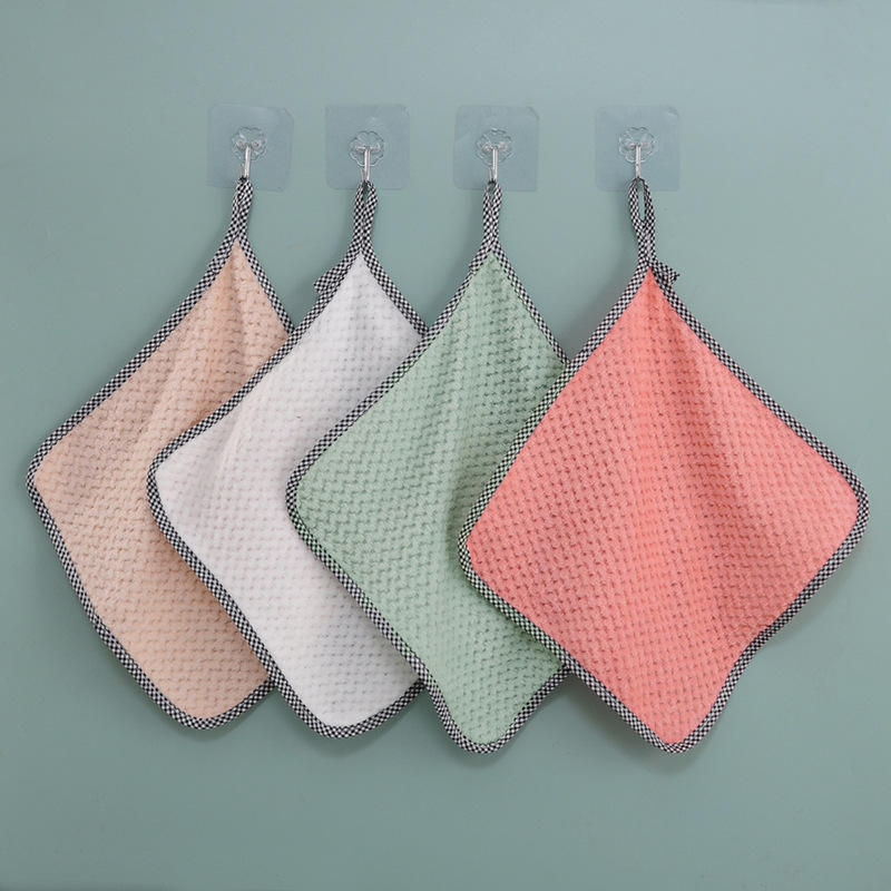 Cleaning Cloth Square Absorbent With Hanging Rope For Kitchen Dishwashing Multi Color Lattice Pattern