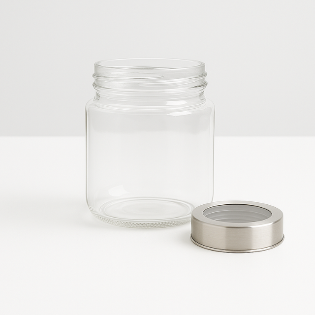 Clear 300 ml Round Glass Jar Lid closure for gourmet food and beverage brands
