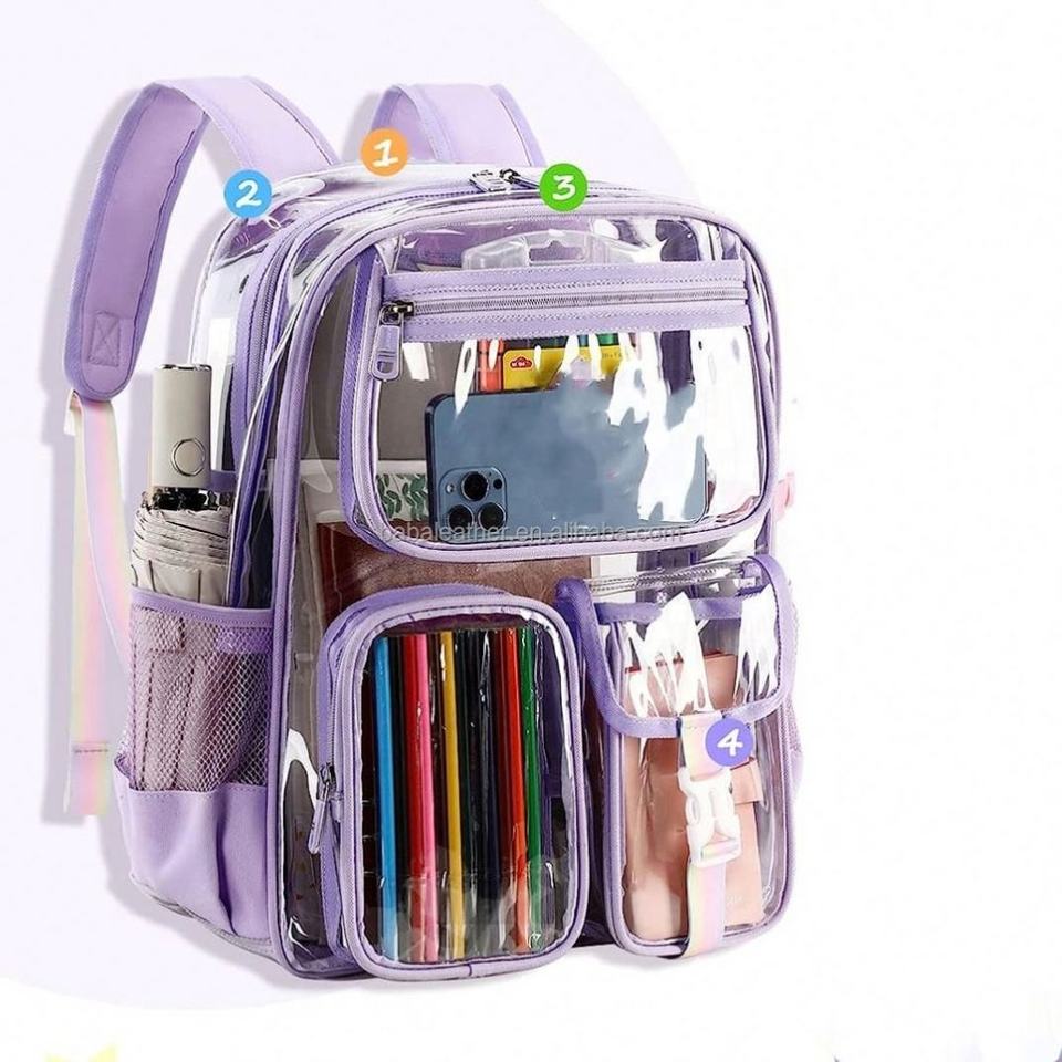 Clear Backpack Stadium Approved Heavy Duty PVC School Transparent Book Bag for Girls Work Travel Festival PVC Clear Backpacks