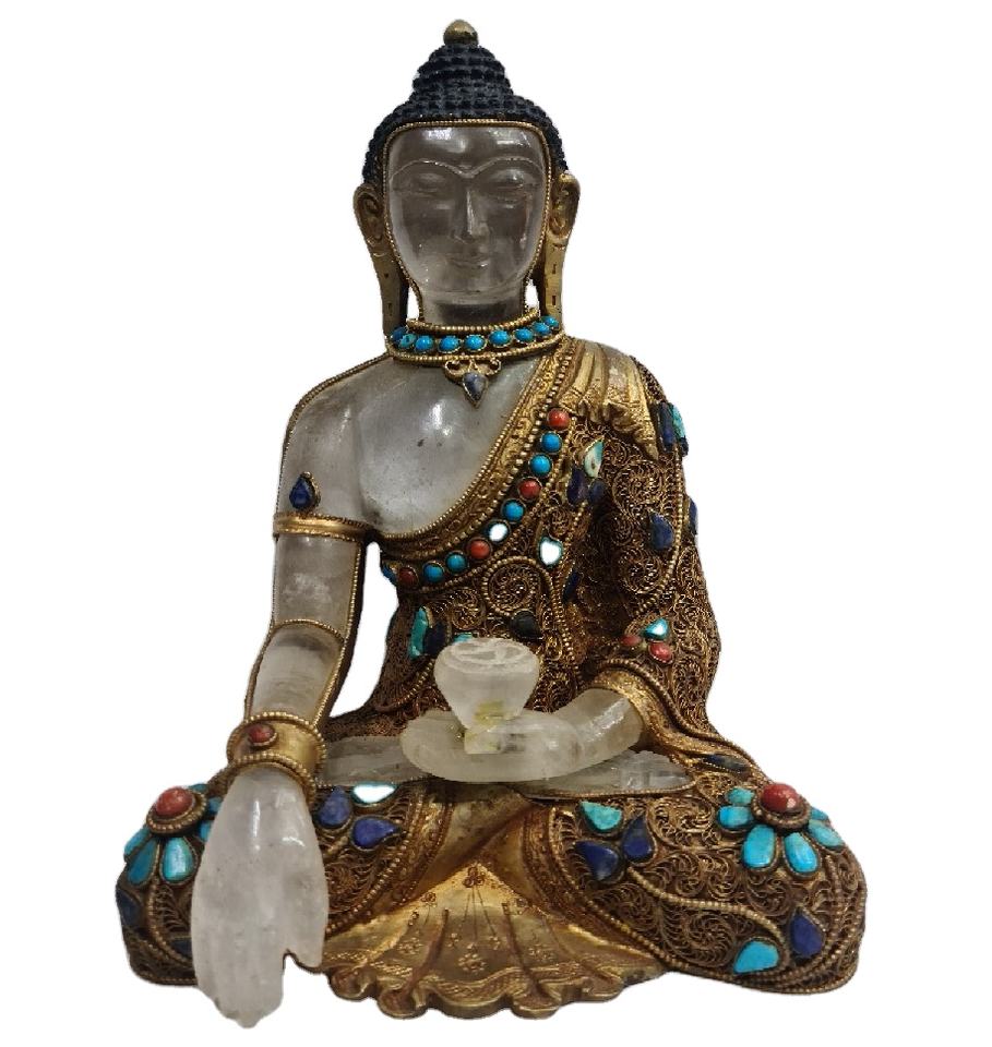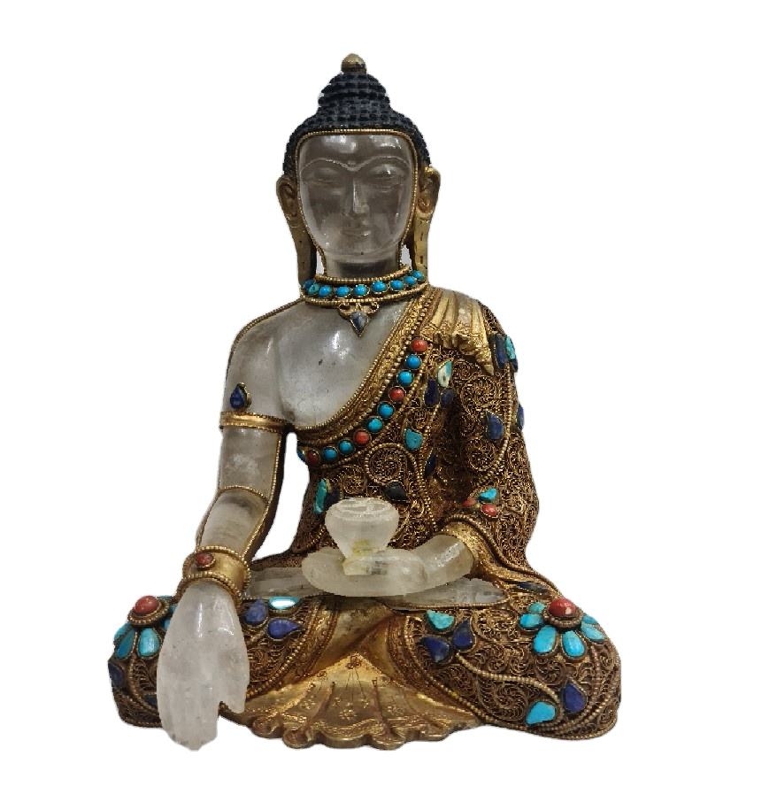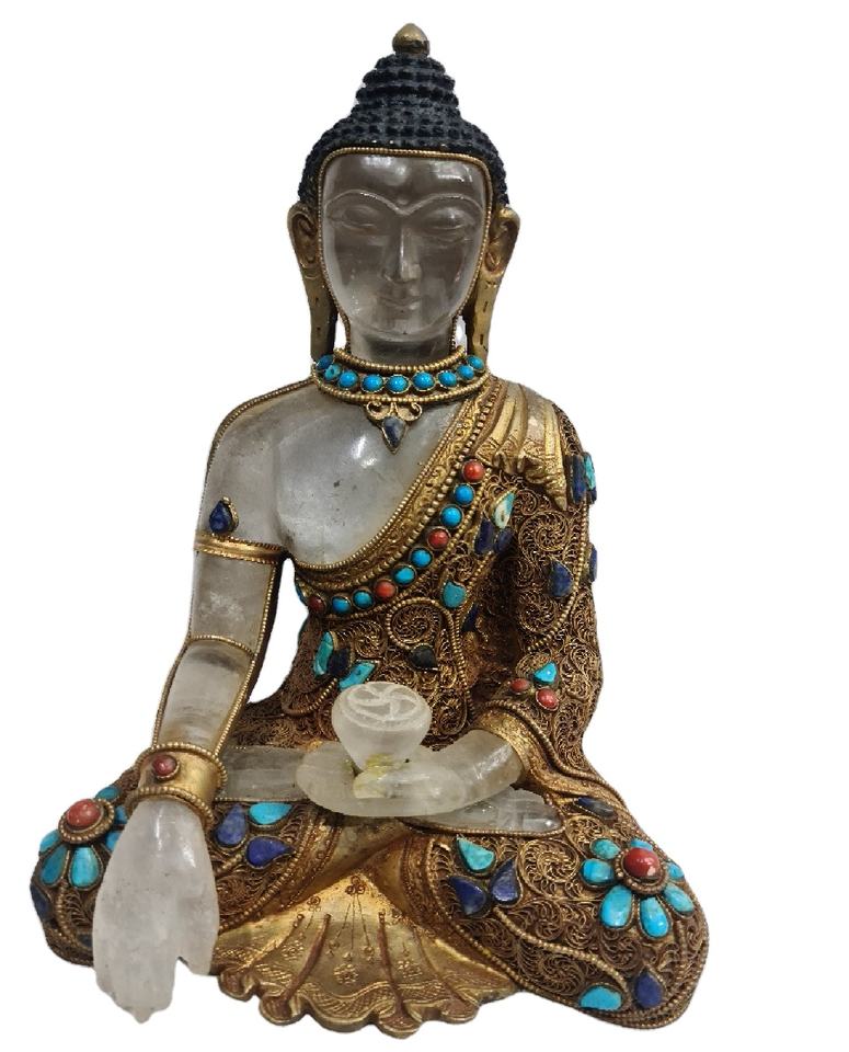 Clear Brass Medicine Buddha Religious Indian Gold Filigree Handcrafted Finish Home Decor Statue Sculpture Figurine