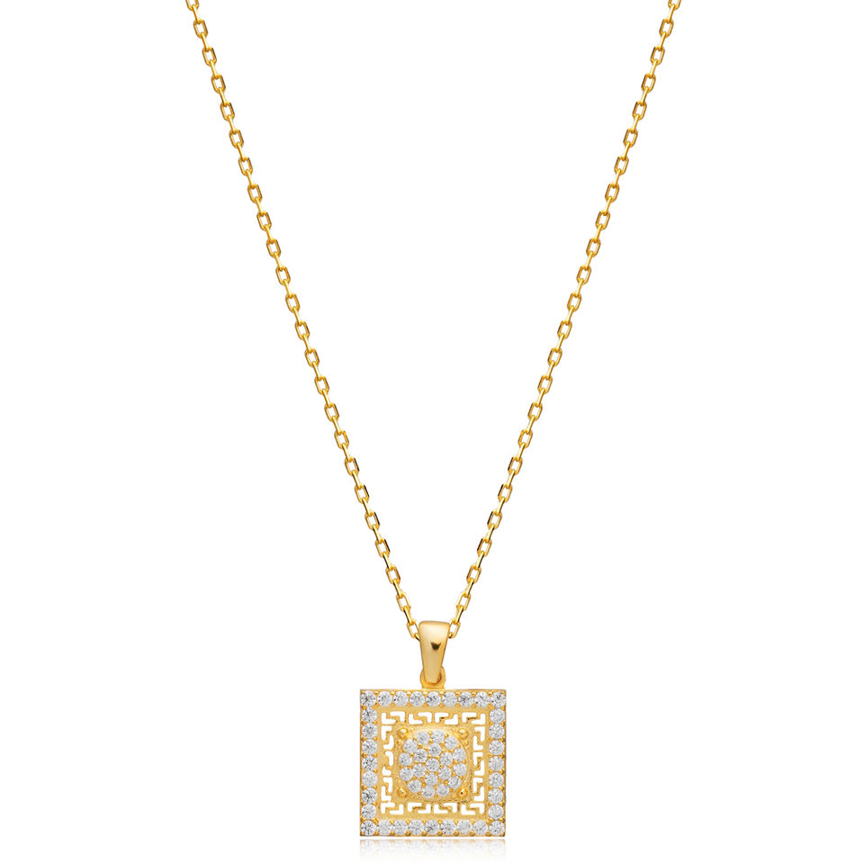 Clear CZ Square Geometric Charm Necklace Silver Jewelry Silver Jewelry Fine Handmade Jewellery