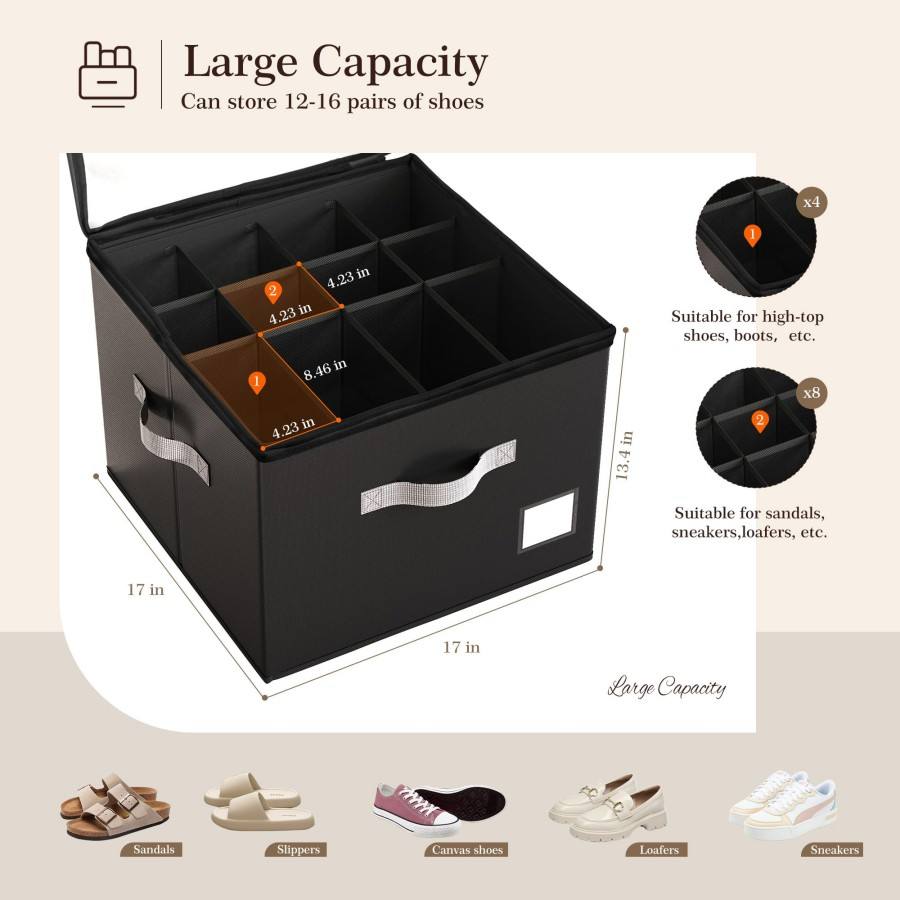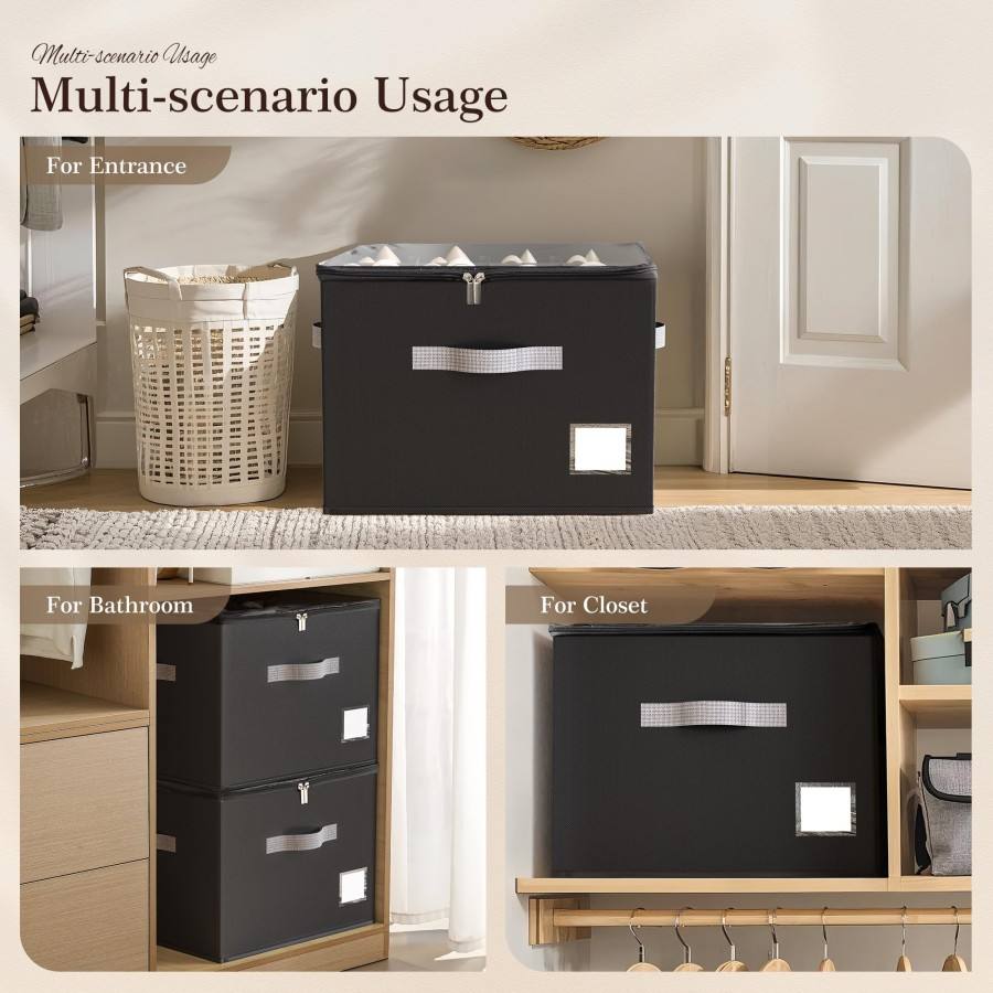 Clear Cover Foldable Shoe Storage Organizer Fabric Shoe Storage Box with Handle for Wardrobe and Living Room