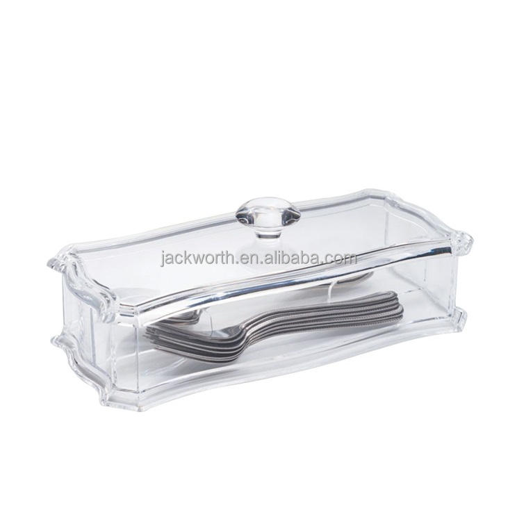 Clear Crystal Acrylic Modern Waterproof Kitchen Flatware Tray with Lid
