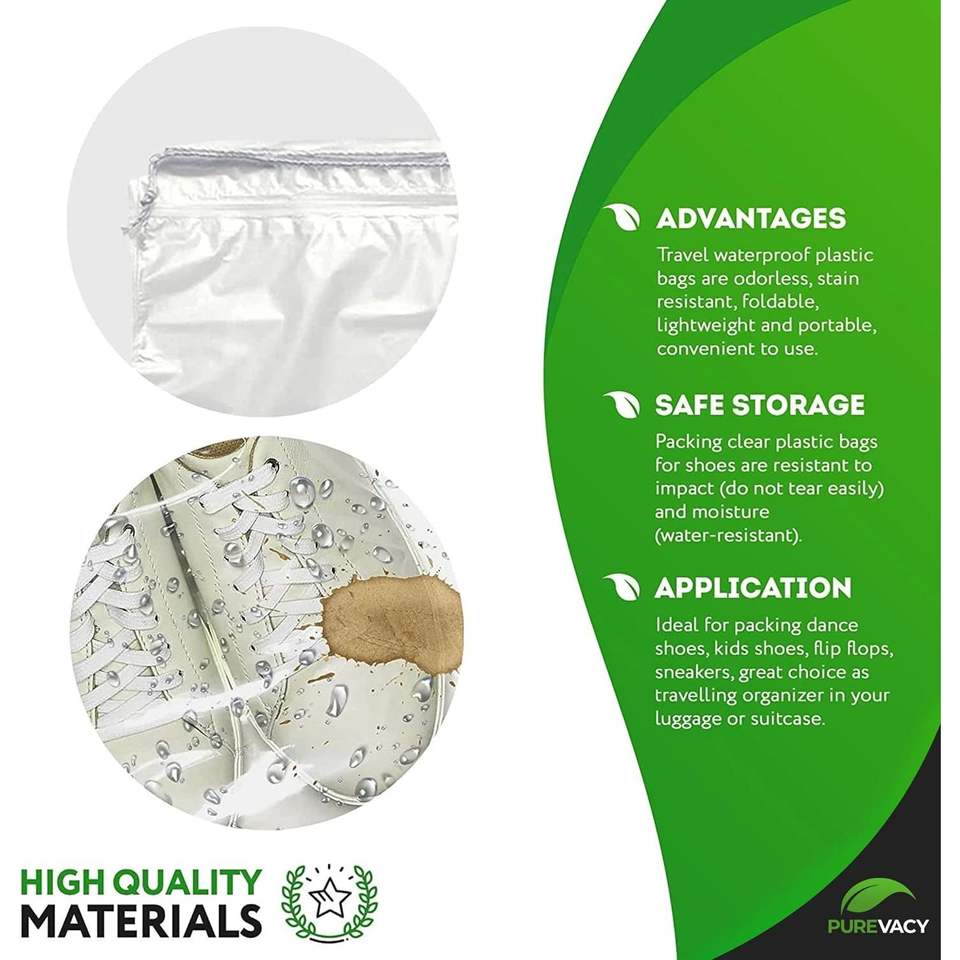 Clear Drawstring Shoe Bags 5\"x8\" Pack 100 2 Mil Waterproof Double Cotton Drawstrings Odorless for Travel Shipping Storage