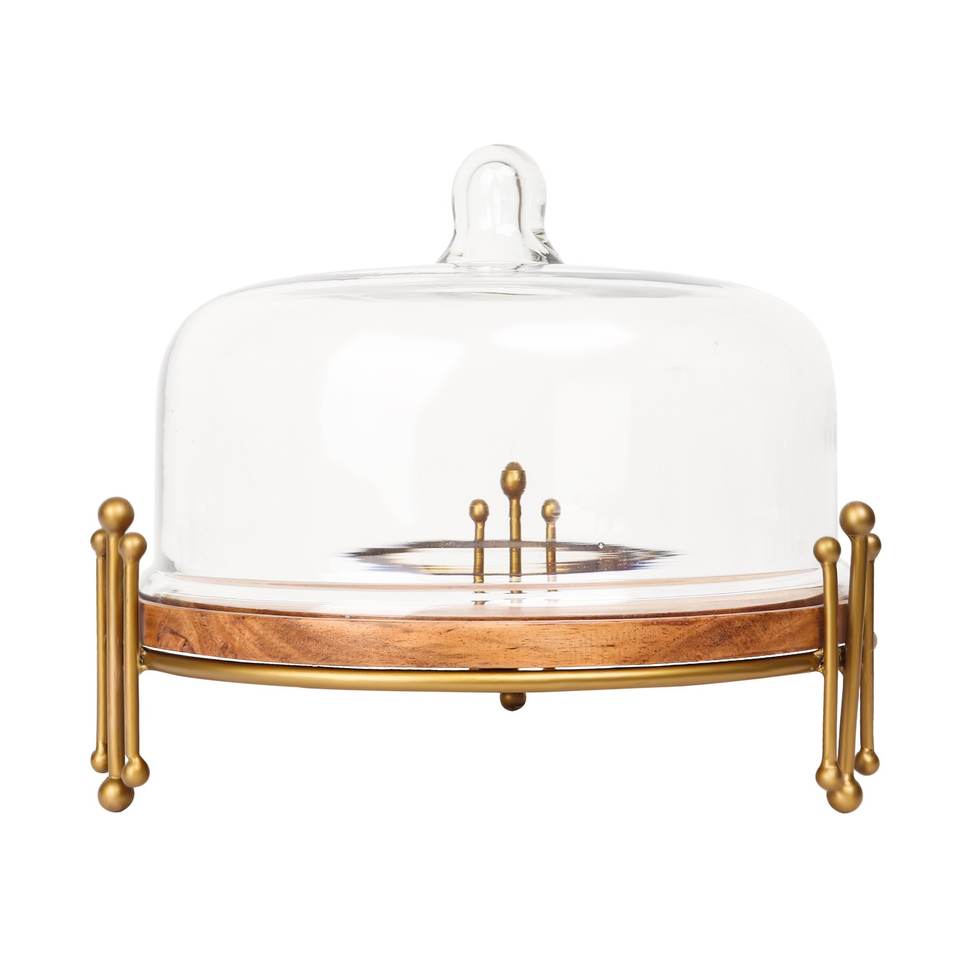 Clear Glass Dome with Bamboo Wood Base Best Selling Product Fancy Glass Cake Stand and Dome Lid Glass