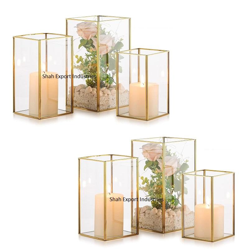Clear Glass & Metal Black Frame Votive Candle Holder Set Square Glass Candle Box for Home & Festivals Tabletop Decor