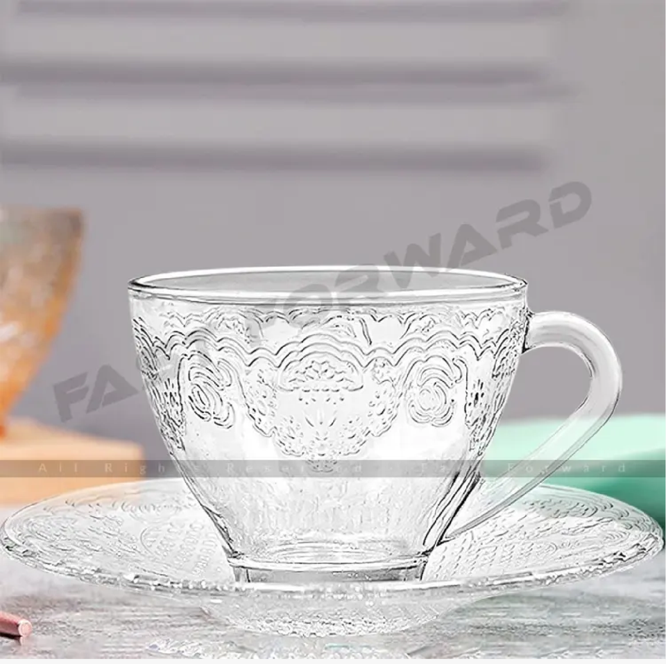 Clear Glass Tea/Coffee Cup Saucer Set of 6pcs Cup & 6pcs Saucer, Adult Glass Teacups for Tea Party, Family, Friends