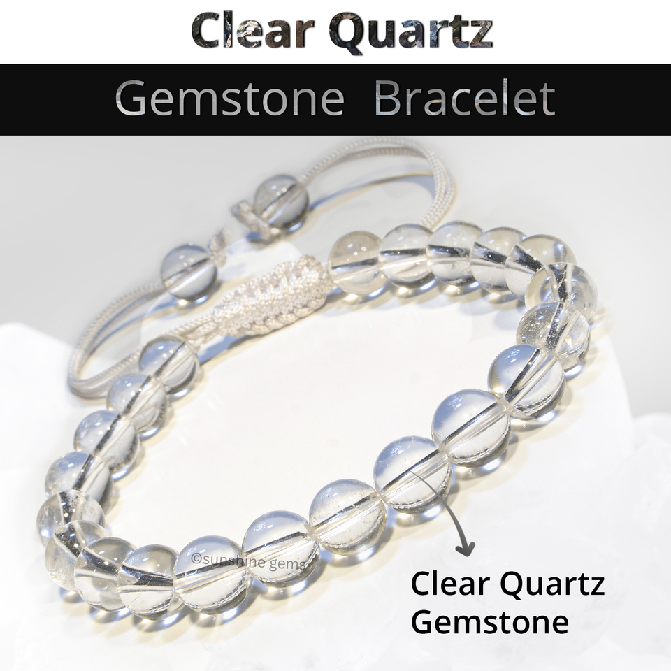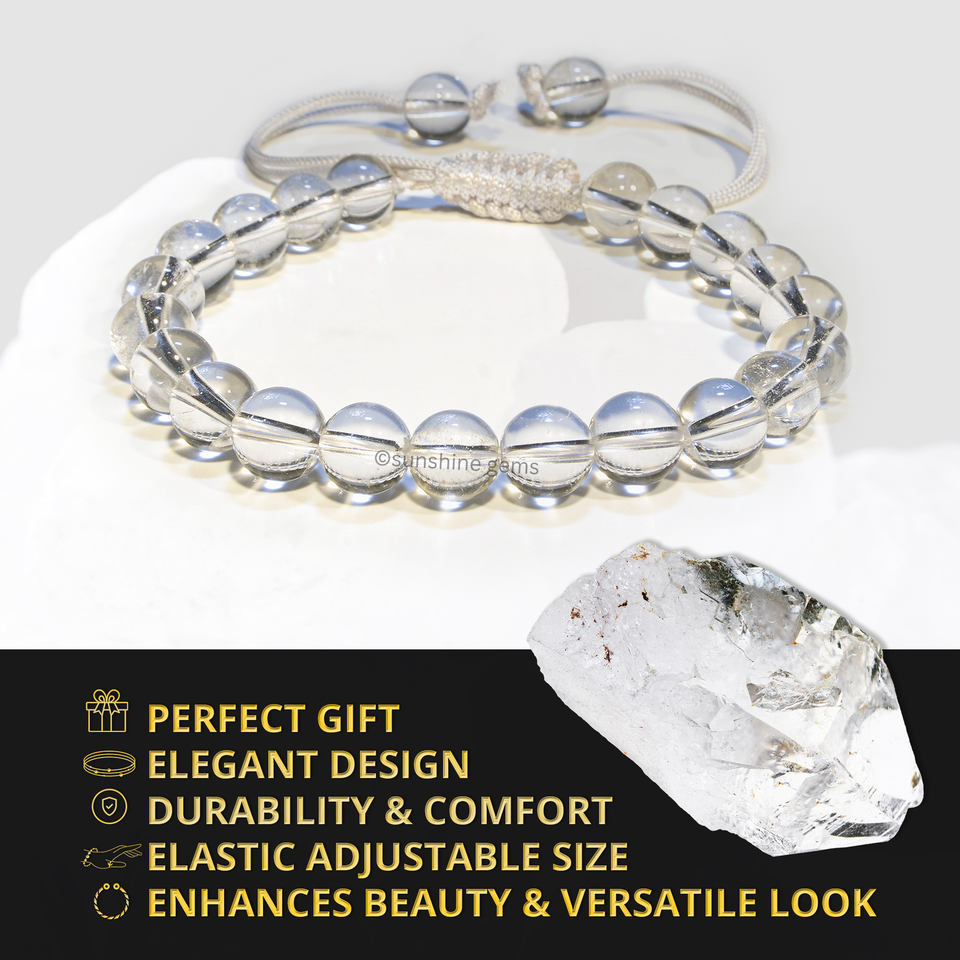 Adjustable Macrame String Bracelet Clear Quartz Crystal Bead with Carved Technique for Men and Women's Healing
