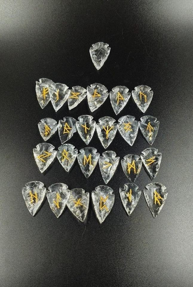 CLEAR QUARTZ ARROWHEAD RUNE SET