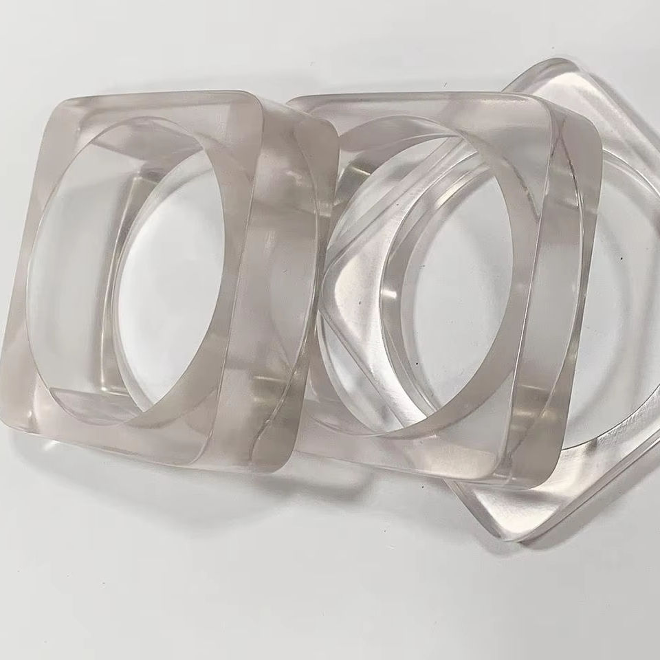 Clear Resin Acrylic Bangle Bracelet Crystal Clear Transparent Personalized Logo Chunky Bangle Cuff Women Fashion Souvenir Loved
