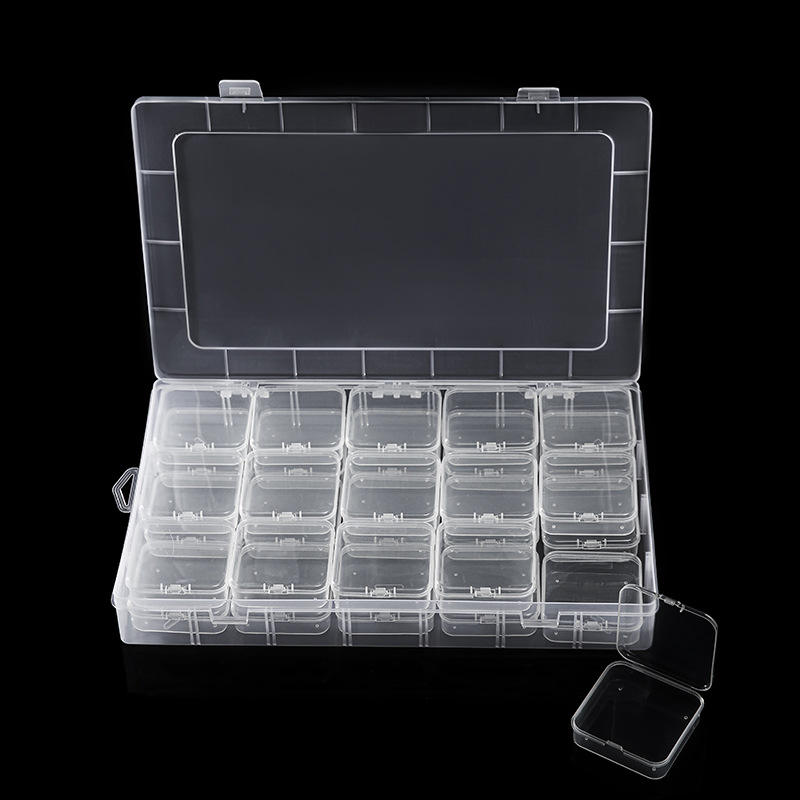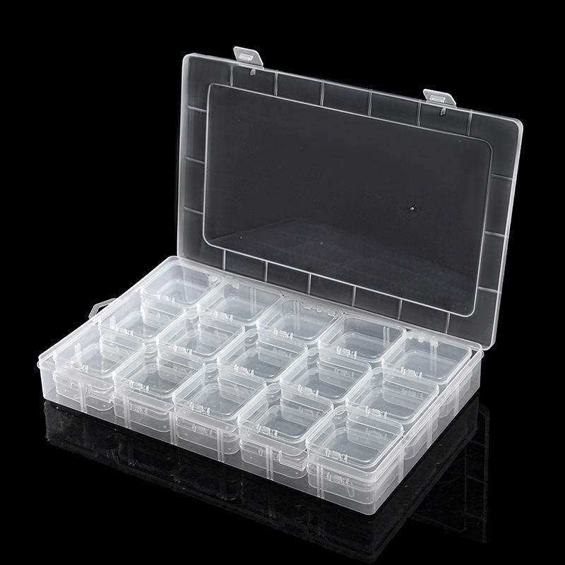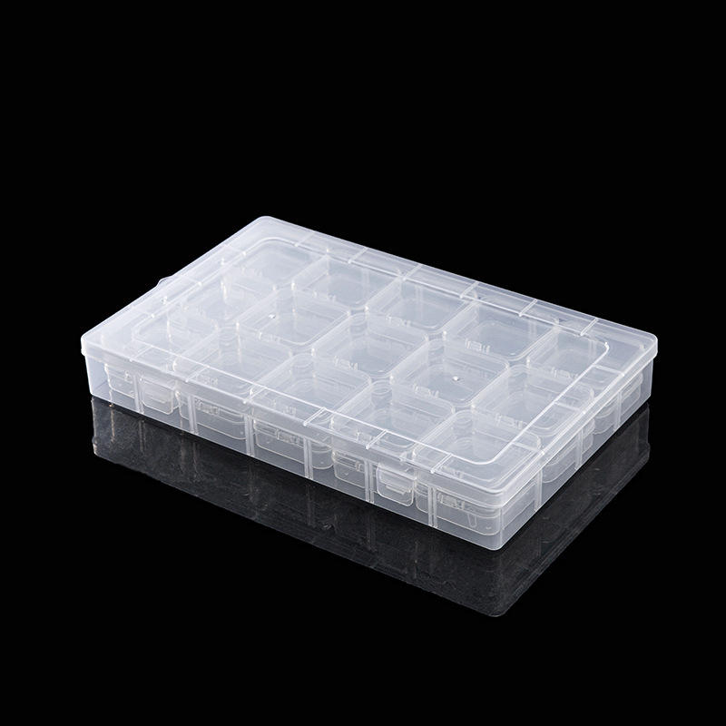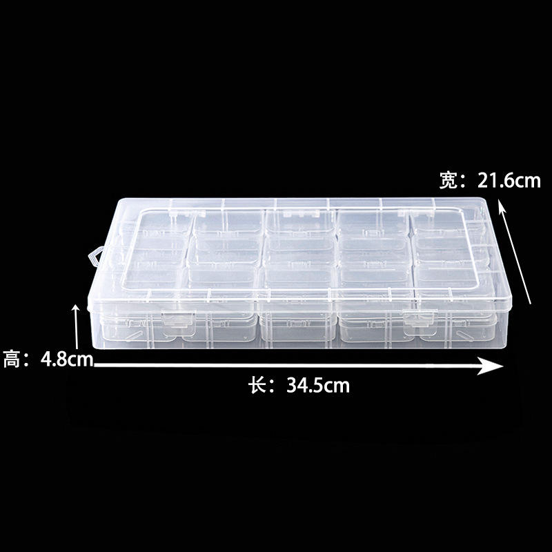 Clear Solid Color Plastic Storage Box 28cm with 15 Compartments for Jewelry Craft Organizing Flip Top Lid Transparent Container