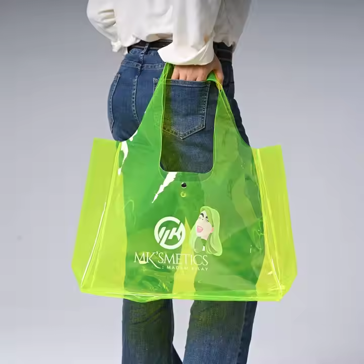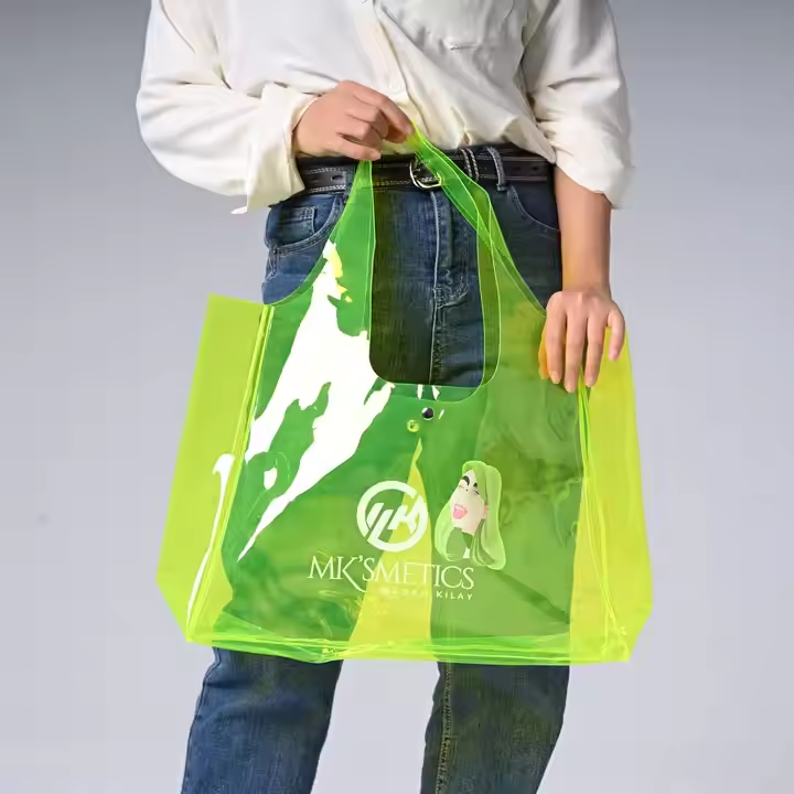 Clear Transparent PVC Shopping Bag Custom Logo Large Jelly Plastic Bags Waterproof Beach Tote Gift Bag