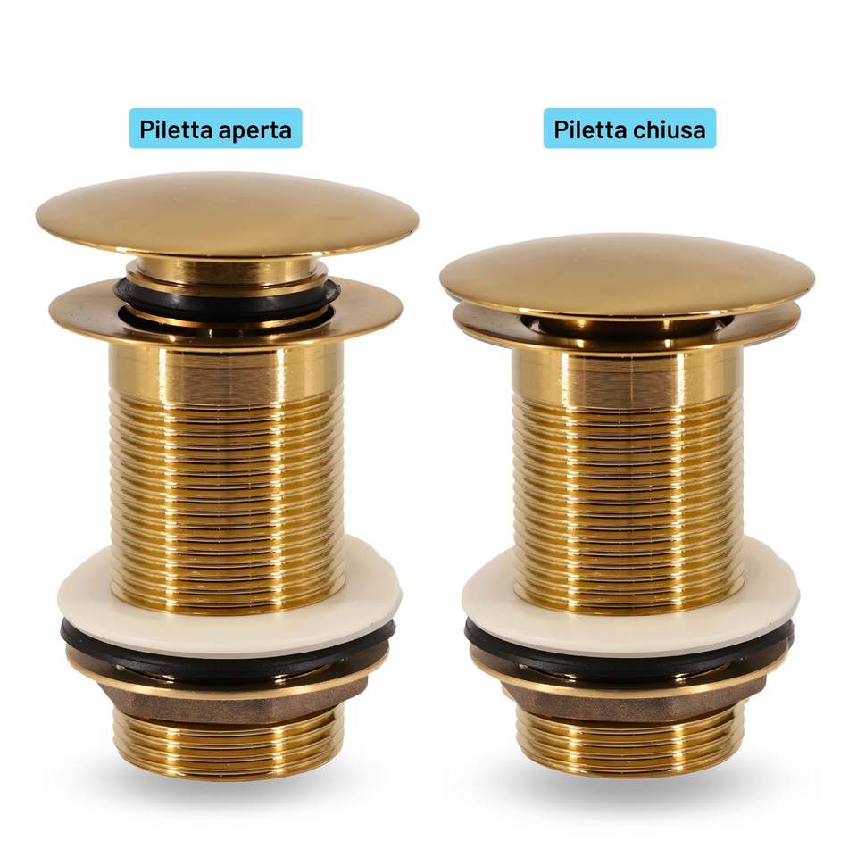 Click-Clack Waste for Freestanding Washbasins Brushed Gold Color Version Without Overflow