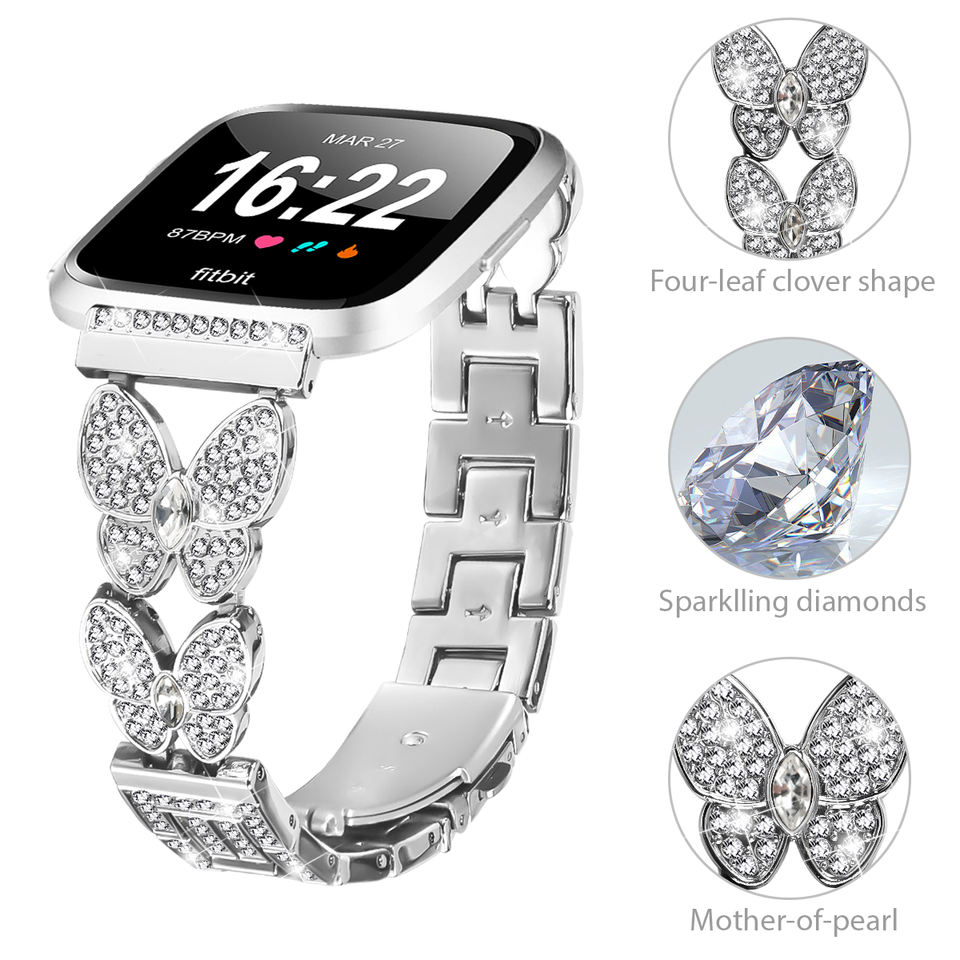Climber Luxury Diamond Stainless Steel Watch Strap for Fitbit Versa 3 Versa 4 /Sense 2 Unique Waterproof Metal Wrist Watch Band