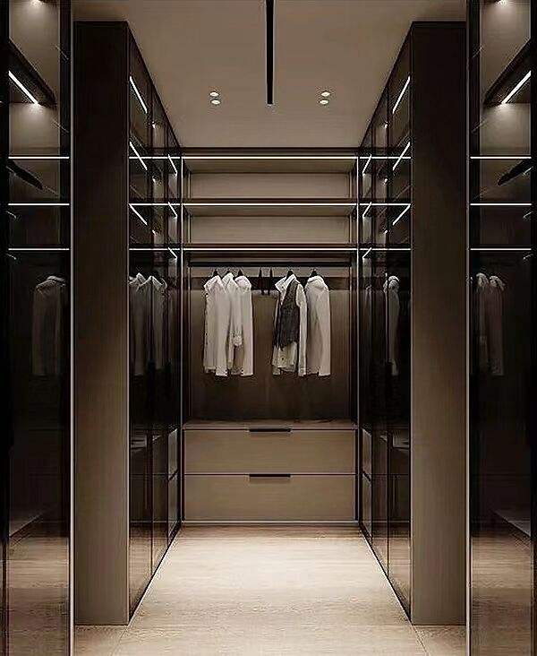 Cloakroom Furniture Clothes Storage Walk in Closet Wardrobe Black Wardrobes Cabinet Closet With Glass Door LED Lights
