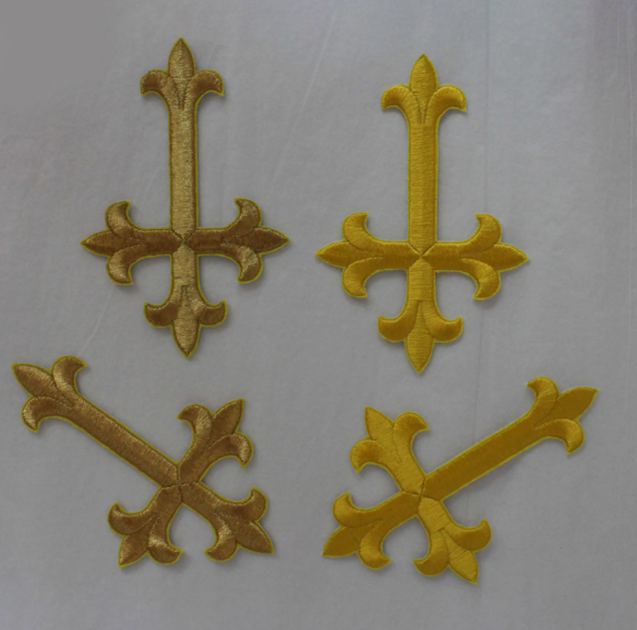Cloister OEM Church Vestments Emblems Crosses Embroidered Brocade Fabric with Lace and Badges Decoration Made of PU Plastic